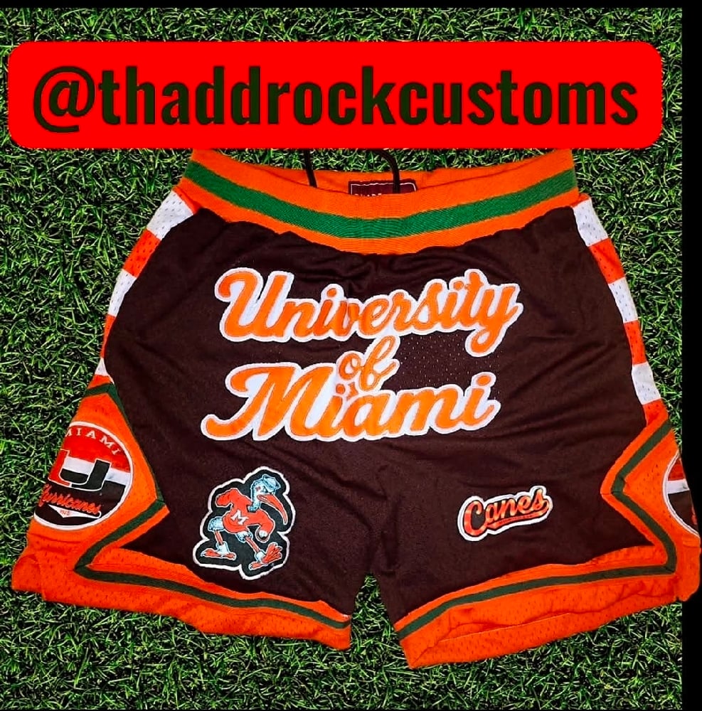 Celebrate Hurricane pride in elite style! These custom University of Miami mesh shorts are loaded with classic U details—from the iconic Sebastian patch to the bold University of Miami script across the front. Designed for comfort, breathability, and unmatched game-day energy.