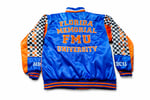 Crafted in rich royal blue and vibrant orange satin, this jacket features “LION PRIDE” boldly embroidered across the chest, anchored by custom FMU and name patches for a truly personalized finish. Checkerboard detailing on the sleeves adds speed and energy, while “1879” honors the legacy front and center. HBCU branding on the cuffs completes the story with purpose and pride.